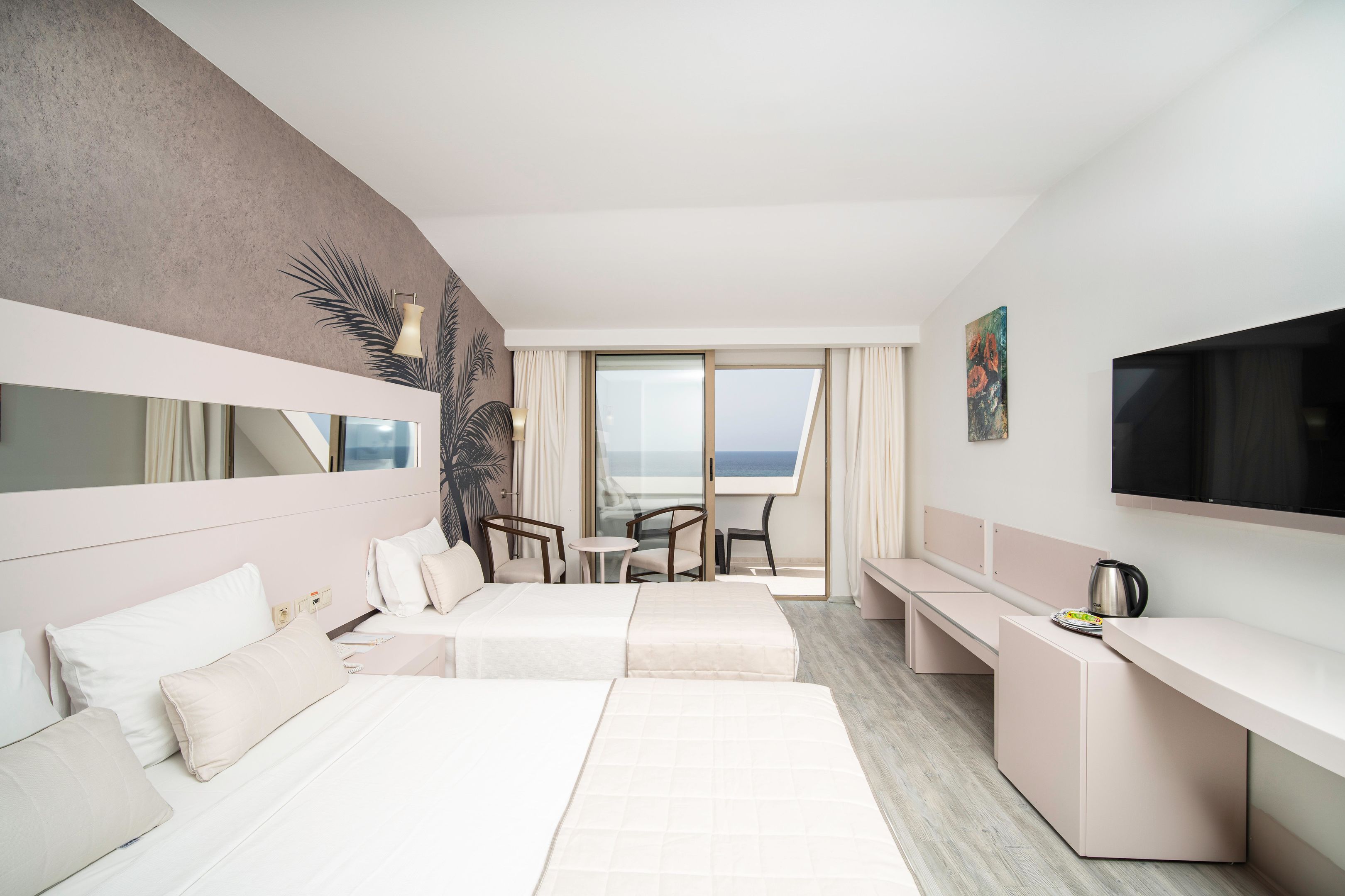 A szobákat légkondicionáló berendezéssel, központi fűtéssel és fürdőszobával szerelték fel. A vendégek a teraszon, illetve az erkélyen is kényelembe helyezhetik magukat. A legtöbb szoba tengerre néző kilátást biztosít. A szőnyegpadlós szobákban franciaágy található. Különálló hálószobák foglalására is lehetőség van. A gyerekeknek kiságyat biztosítanak. Ezen kívül van széf és minbár is. Az alapfelszereltséghez tartozik egy tea-/kávéfőző is. A nyaralás kényelmét szolgálja az internet-hozzáférés, a telefon, a TV-készülék, a rádió és WiFi. A fürdőszobák felszereléséhez zuhanyzó és fürdőkád tartozik. Továbbá rendelkezésre áll egy hajszárító. A gyermekekkel érkezőknek speciálisan kialakított családi szobák állnak rendelkezésre.