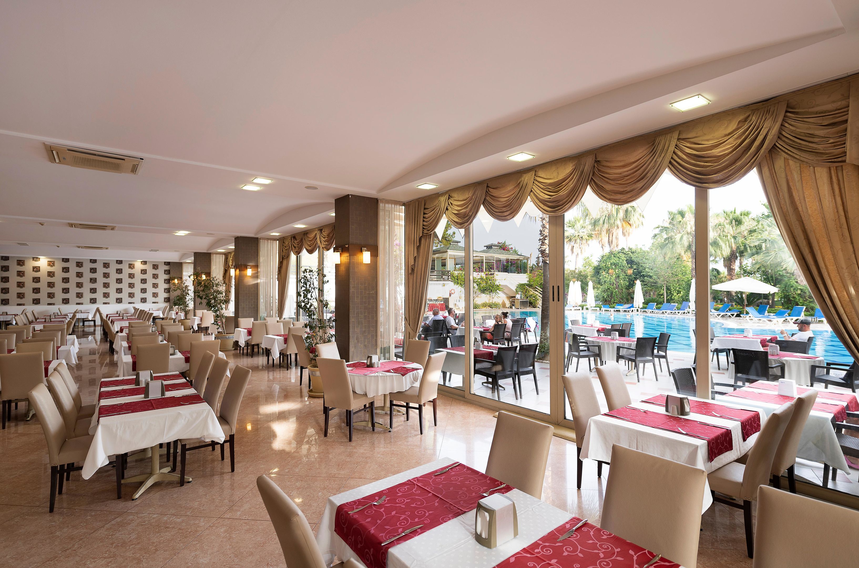 All inclusive ellátás. Reggeli, ebéd és vacsora külön is szerepel a kínálatban. A fő étkezések mellett snackeket is kínálnak. A vendégek italfogyasztása az árban benne foglaltatik. A hotel kínálatában találhatók alkoholmentes italok és alkoholos italok.
